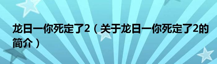 本文關于龍日一你死定了2的簡介就講解完畢,希望對大家有所幫助。
