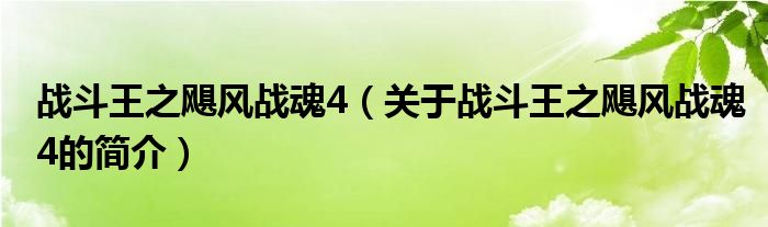 本文關于戰斗王之颶風戰魂4的簡介就講解完畢,希望對大家有所幫助。