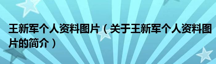 本文關于王新軍個人資料圖片的簡介就講解完畢,希望對大家有所幫助。