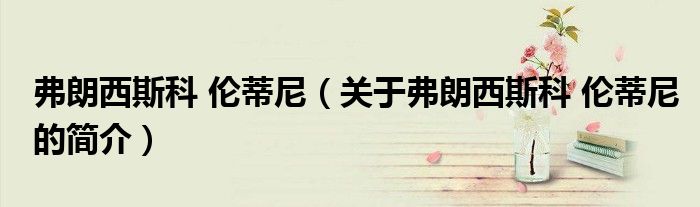本文關于弗朗西斯科 倫蒂尼的簡介就講解完畢,希望對大家有所幫助。