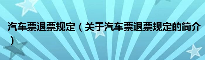 本文關(guān)于汽車票退票規(guī)定的簡介就講解完畢,希望對大家有所幫助。