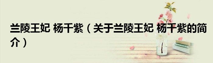 本文關于蘭陵王妃 楊千紫的簡介就講解完畢,希望對大家有所幫助。