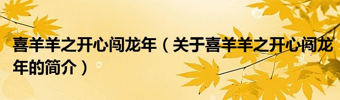 大家好,喜羊羊之開心闖龍年,關(guān)于喜羊羊之開心闖龍年的簡介很多人還不知道,現(xiàn)在讓我們一起來看看吧!