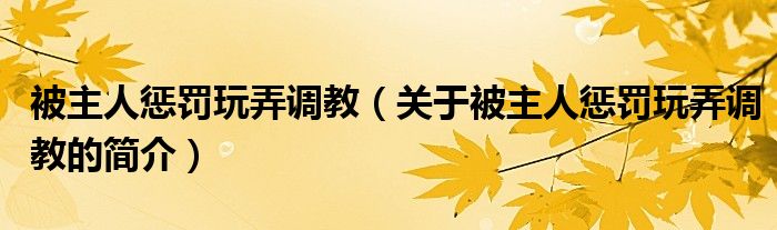 本文關于被主人懲罰玩弄調教的簡介就講解完畢,希望對大家有所幫助。