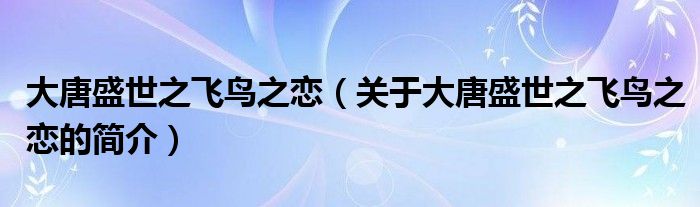 本文關(guān)于大唐盛世之飛鳥之戀的簡介就講解完畢,希望對大家有所幫助。
