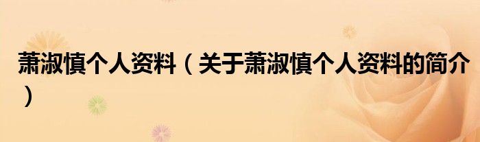 大家好,蕭淑慎個人資料,關于蕭淑慎個人資料的簡介很多人還不知道,現在讓我們一起來看看吧!