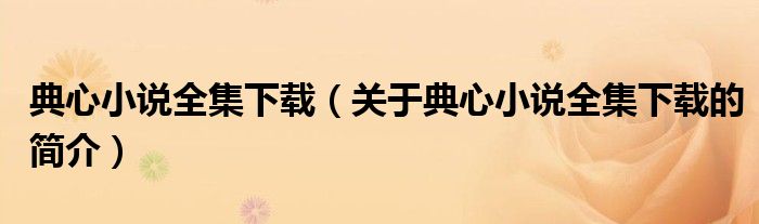 大家好,典心小說全集下載,關(guān)于典心小說全集下載的簡介很多人還不知道,現(xiàn)在讓我們一起來看看吧!