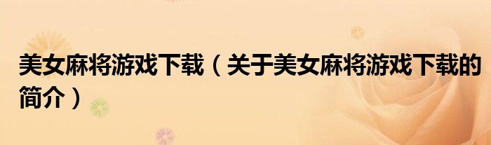 本文關(guān)于美女麻將游戲下載的簡介就講解完畢,希望對大家有所幫助。