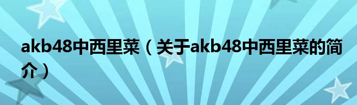 大家好,akb48中西里菜,關于akb48中西里菜的簡介很多人還不知道,現在讓我們一起來看看吧!