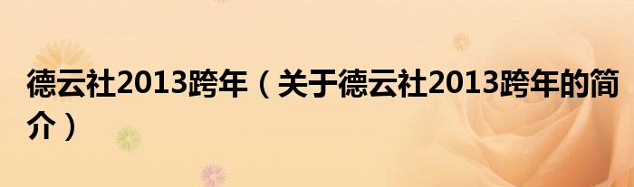 大家好,德云社2013跨年,關于德云社2013跨年的簡介很多人還不知道,現在讓我們一起來看看吧!