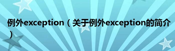 大家好,例外exception,關于例外exception的簡介很多人還不知道,現在讓我們一起來看看吧!