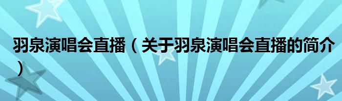 本文關于羽泉演唱會直播的簡介就講解完畢,希望對大家有所幫助。