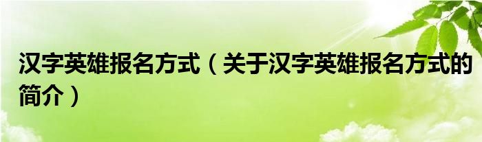 本文關于漢字英雄報名方式的簡介就講解完畢,希望對大家有所幫助。
