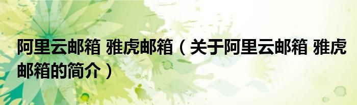 大家好,阿里云郵箱 雅虎郵箱,關于阿里云郵箱 雅虎郵箱的簡介很多人還不知道,現在讓我們一起來看看吧!