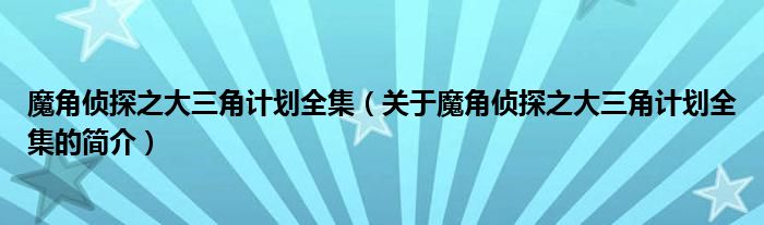 大家好,魔角偵探之大三角計劃全集,關于魔角偵探之大三角計劃全集的簡介很多人還不知道,現在讓我們一起來看看吧!