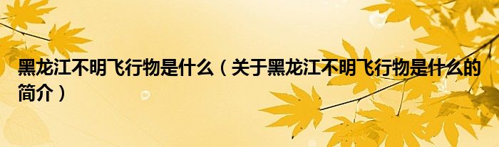 本文關于黑龍江不明飛行物是什么的簡介就講解完畢,希望對大家有所幫助。