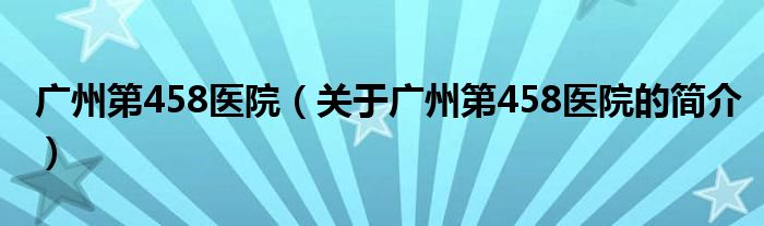 本文關(guān)于廣州第458醫(yī)院的簡(jiǎn)介就講解完畢,希望對(duì)大家有所幫助。