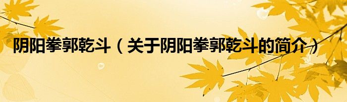大家好,陰陽拳郭乾斗,關于陰陽拳郭乾斗的簡介很多人還不知道,現在讓我們一起來看看吧!