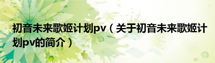 大家好,初音未來歌姬計劃pv,關(guān)于初音未來歌姬計劃pv的簡介很多人還不知道,現(xiàn)在讓我們一起來看看吧!