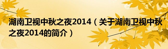 本文關(guān)于湖南衛(wèi)視中秋之夜2014的簡介就講解完畢,希望對大家有所幫助。