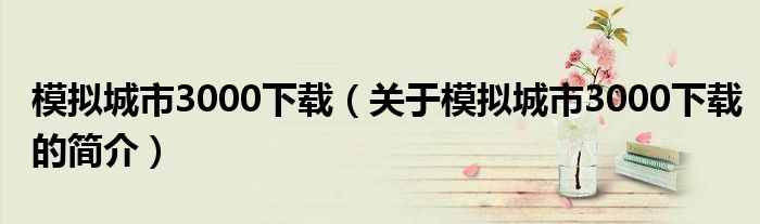 本文關于模擬城市3000下載的簡介就講解完畢,希望對大家有所幫助。