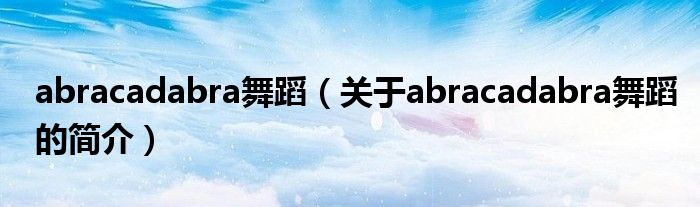 大家好,abracadabra舞蹈,關于abracadabra舞蹈的簡介很多人還不知道,現在讓我們一起來看看吧!