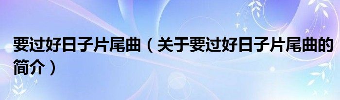 本文關(guān)于要過(guò)好日子片尾曲的簡(jiǎn)介就講解完畢,希望對(duì)大家有所幫助。