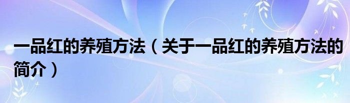 大家好,一品紅的養殖方法,關于一品紅的養殖方法的簡介很多人還不知道,現在讓我們一起來看看吧!