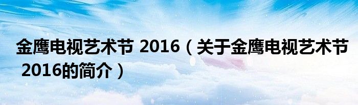 大家好,金鷹電視藝術節 2016,關于金鷹電視藝術節 2016的簡介很多人還不知道,現在讓我們一起來看看吧!