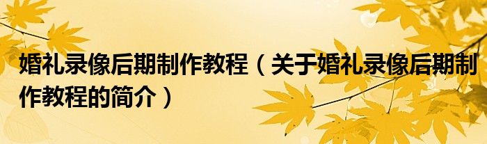 本文關(guān)于婚禮錄像后期制作教程的簡介就講解完畢,希望對大家有所幫助。
