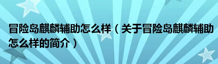 本文關(guān)于冒險(xiǎn)島麒麟輔助怎么樣的簡(jiǎn)介就講解完畢,希望對(duì)大家有所幫助。