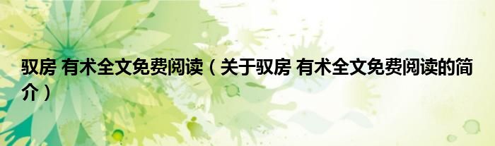 本文關于馭房 有術全文免費閱讀的簡介就講解完畢,希望對大家有所幫助。