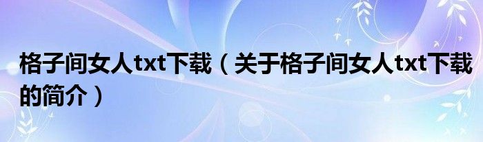 本文關于格子間女人txt下載的簡介就講解完畢,希望對大家有所幫助。