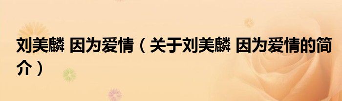 本文關(guān)于劉美麟 因?yàn)閻?ài)情的簡(jiǎn)介就講解完畢,希望對(duì)大家有所幫助。