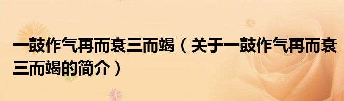 大家好,一鼓作氣再而衰三而竭,關于一鼓作氣再而衰三而竭的簡介很多人還不知道,現(xiàn)在讓我們一起來看看吧!