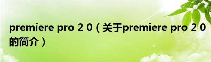 大家好,premiere pro 2 0,關于premiere pro 2 0的簡介很多人還不知道,現在讓我們一起來看看吧!