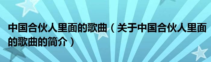 本文關于中國合伙人里面的歌曲的簡介就講解完畢,希望對大家有所幫助。