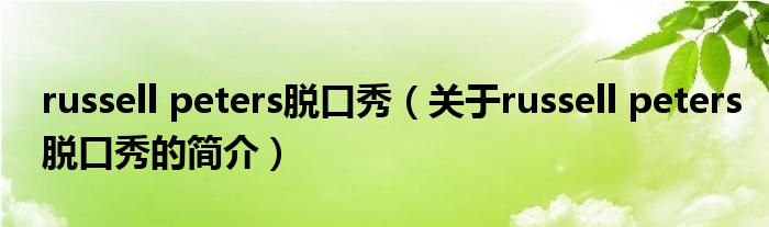本文關(guān)于russell peters脫口秀的簡(jiǎn)介就講解完畢,希望對(duì)大家有所幫助。