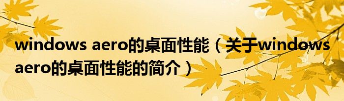 大家好,windows aero的桌面性能,關于windows aero的桌面性能的簡介很多人還不知道,現在讓我們一起來看看吧!