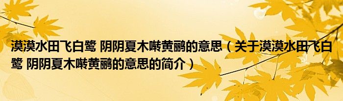 本文關(guān)于漠漠水田飛白鷺 陰陰夏木囀黃鸝的意思的簡(jiǎn)介就講解完畢,希望對(duì)大家有所幫助。