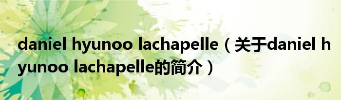 本文關于daniel hyunoo lachapelle的簡介就講解完畢,希望對大家有所幫助。