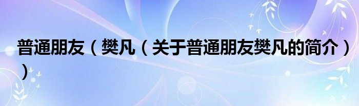 本文關(guān)于普通朋友 樊凡的簡(jiǎn)介就講解完畢,希望對(duì)大家有所幫助。
