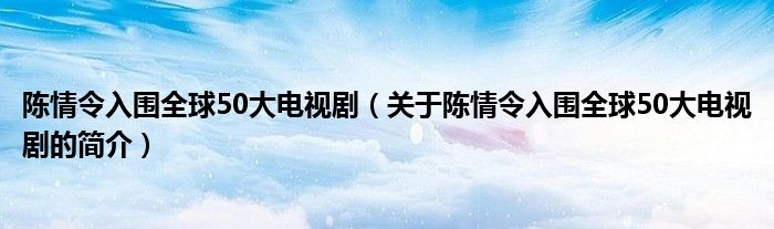 本文關于陳情令入圍全球50大電視劇的簡介就講解完畢,希望對大家有所幫助。