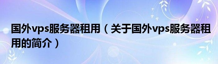 本文關于國外vps服務器租用的簡介就講解完畢,希望對大家有所幫助。