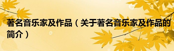 大家好,著名音樂家及作品,關于著名音樂家及作品的簡介很多人還不知道,現在讓我們一起來看看吧!