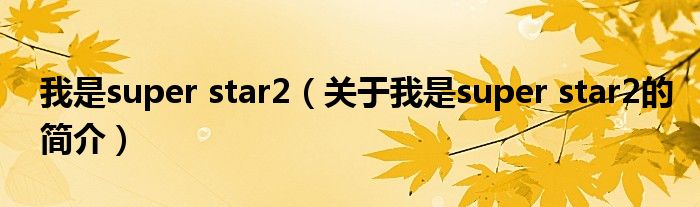 本文關于我是super star2的簡介就講解完畢,希望對大家有所幫助。
