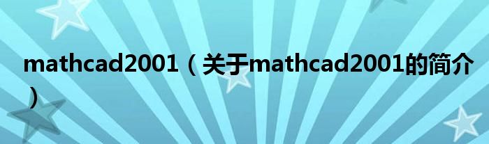 大家好,mathcad2001,關(guān)于mathcad2001的簡介很多人還不知道,現(xiàn)在讓我們一起來看看吧!