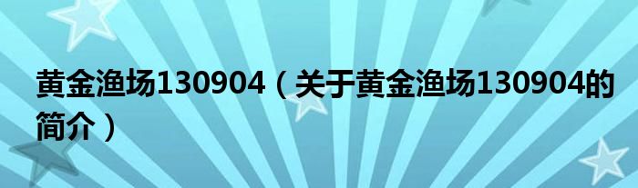 本文關于黃金漁場130904的簡介就講解完畢,希望對大家有所幫助。