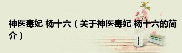 本文關于神醫毒妃 楊十六的簡介就講解完畢,希望對大家有所幫助。
