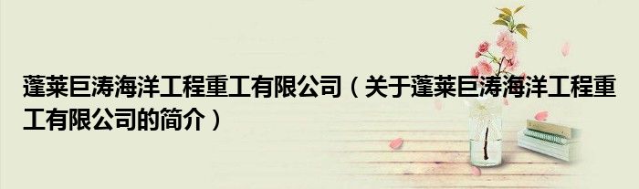 本文關于蓬萊巨濤海洋工程重工有限公司的簡介就講解完畢,希望對大家有所幫助。